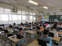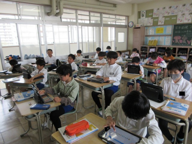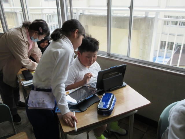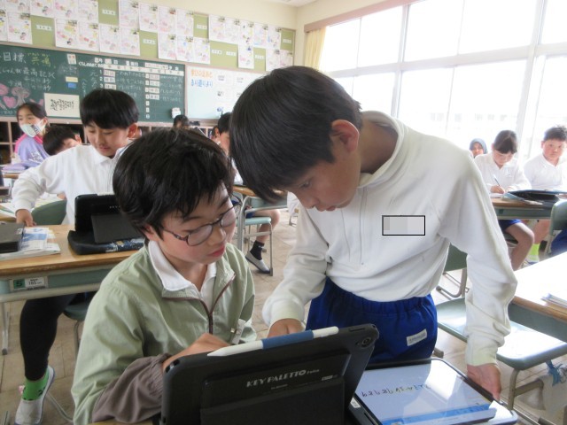 算数の学習で一億をこえる数を行っています。大きな数の大きさ比べを行いました。自由に13桁の数を作り、ペアで大きさを比べ、どのように比べるのかそのくらべ方を考えました。最後に0~9の数字を使い、一番大きな13桁の数と一番小さな13桁の数を考え、理解を深めることができました。