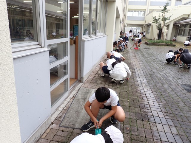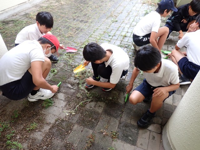 6年生がフレキシブルタイムの時間を使って、中庭の草取りをしてくれました。真剣な顔をして学校のために動く6年生のみなさんに感謝です。