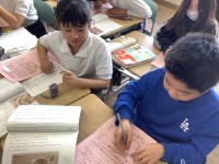 国語の授業では、考えの理由と根拠を吟味する活動をしました。考えに対しての理由が曖昧でないか、理由の内容がずれていないかを確かめる方法について考えました。相手が納得する伝え方や書き方にするためには、より詳しく理由を伝える必要があることに気づきました。