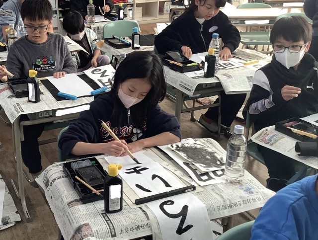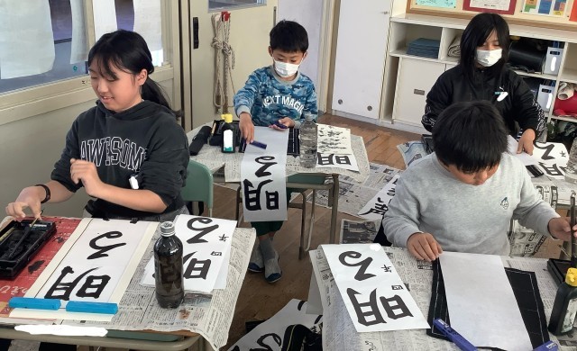 12/11 4年生 国語「書き初めの練習をしたよ」