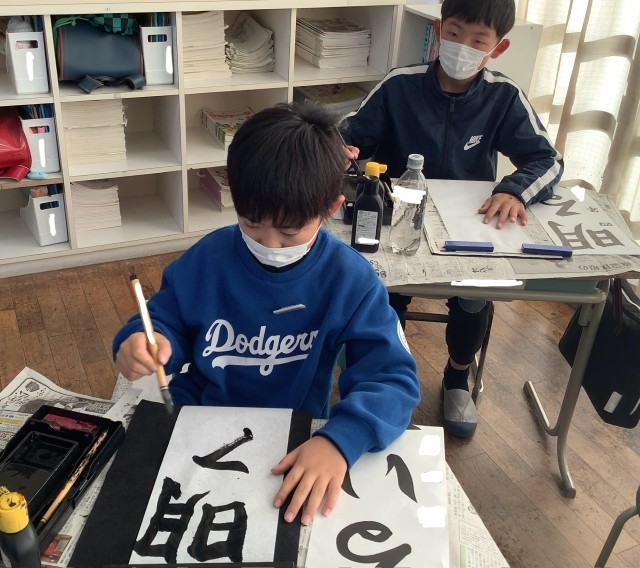 国語の時間に書き初めの練習を行いました。書き初めの字は「明るい声」です。昨年より1文字増え、漢字も書くことになり、レベルアップしています。子どもたちは、お手本をよく見ながら、落ち着いて丁寧に書く練習をしました。年明けの本番に向けて、頑張って練習していきます。