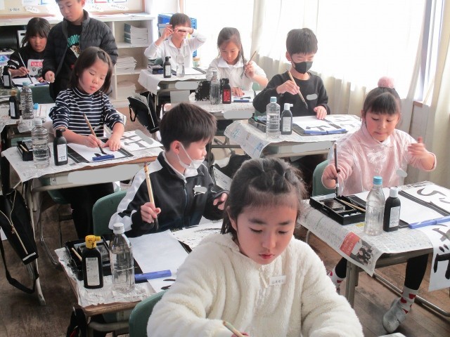 3年生の書き初めの字は「山ざくら」です。一字一字の形を整えるのが難しい字ばかりです。頑張って練習しています。