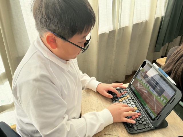 今日の学活では、タイピングに取り組みました。SEさんに来ていただき、話し合ったり対戦したりしながら、早く文字を打てるようにしました。慣れてくると、問題の難易度を高くしながら意欲的に行うことができました。