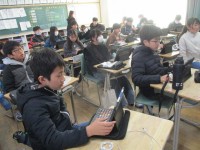 校長先生のお話と児童代表のことばを映像で各教室に届けました。