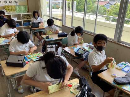 3組は家庭科で裁縫の授業をしました。2回目ということもあり、玉結びや玉止めに慣れてきました。