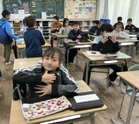 3年生の書写の授業が始まりました。書写は教頭先生に教えてもらいます。初めての授業では、教頭先生から星野富弘さんの話を聞きました。手足が動かなくても、努力や工夫を積み重ねて上手に文字や絵をかけるようにした富弘さんのように、自分たちもがんばっていこうと気持ちを高めました。