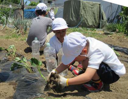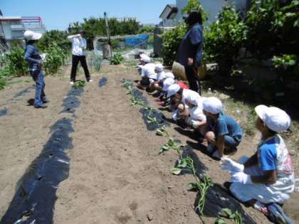地域の方からお借りしている畑に、サツマイモの苗を植えました。