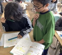 国語の時間に、クラスの生き物図鑑を作っています。リーフレットの形で作成するように頑張っています。子どもたちは自分の好きな生き物を選択して、生き物のひみつを見つけて伝えたい事柄を選んで、まとめていました。要約することを目標に頑張っています。完成したら、生き物図鑑発表会をするのが楽しみです。