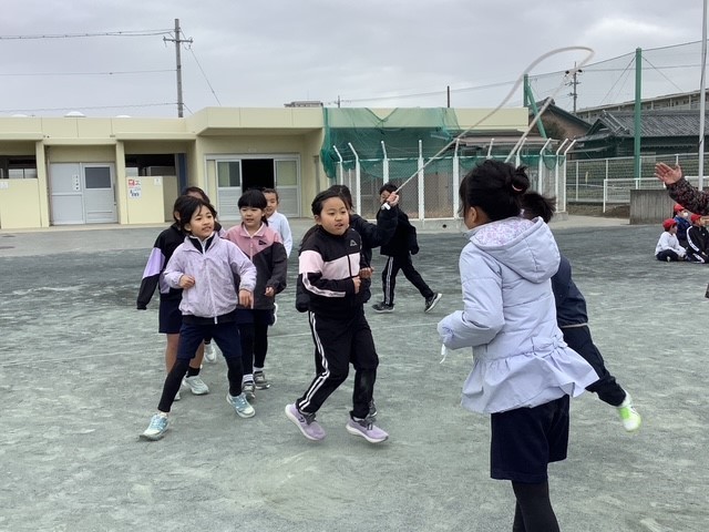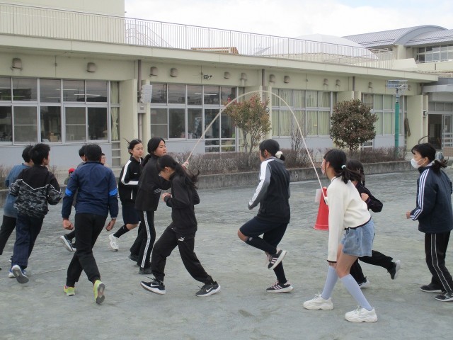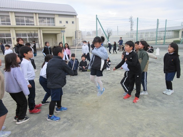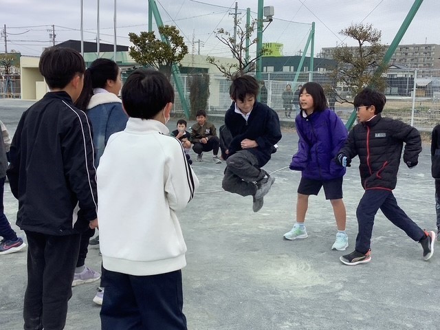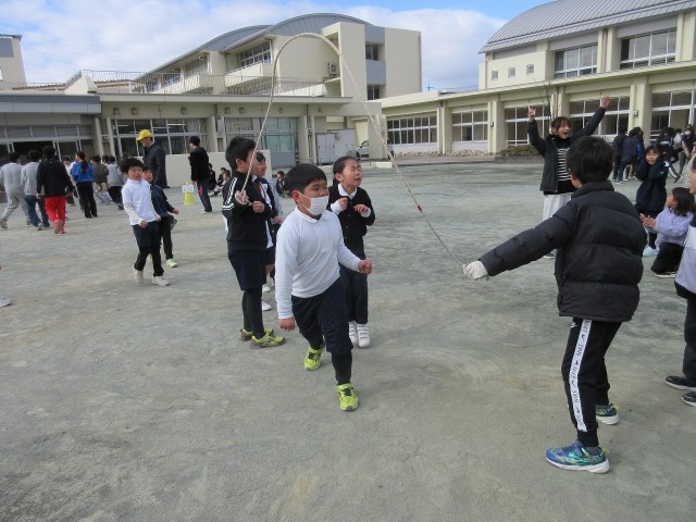 今日は北風が冷たく感じる中でしたが、休み時間には、各学級の子どもたちが運動場に出て練習をしていました。リズムよく、軽快に跳ぶ姿は、見ていて驚くほどです。みなさん、頑張ってくださいね!