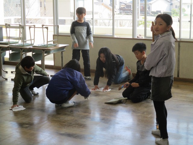 教室移動前に大掃除を行いました。来年度に新しく使う子どもたちのために、隅々まできれいいにしました。思い出深い教室で過ごせる時間も、ほんの僅かです。