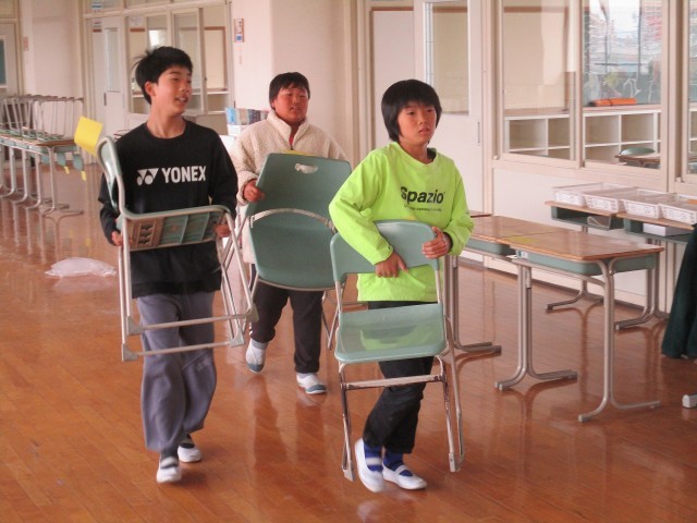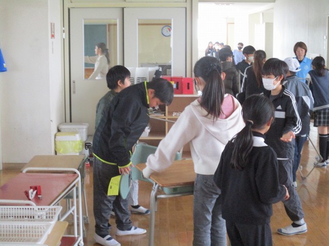 4月からの新しい学年に向けて、教室移動を行いました。まずは、机やいすの号数調節のため、学習セットの移動を行いました。その後、子どもたちが荷物を持って思い出深い教室を後にし、次年度の学年の教室へと移動しました。