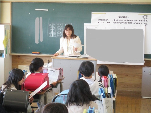 各学年で新学級がスタートしました。新しい担任の先生、新しい仲間たちとともに、一年間をともに過ごします。これからの生活に期待しながら、子どもたちは先生や仲間の話をしっかりと聞いていました。