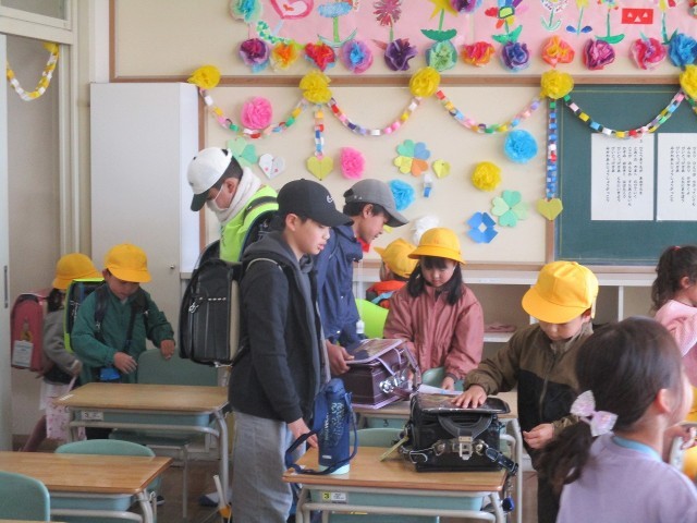 4月からの新しい学年に向けて、教室移動を行いました。まずは、机やいすの号数調節のため、学習セットの移動を行いました。その後、子どもたちが荷物を持って思い出深い教室を後にし、次年度の学年の教室へと移動しました。