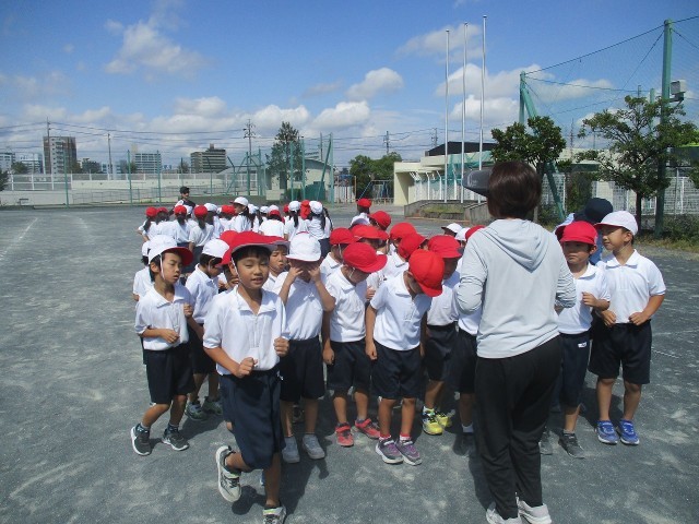 来週の運動会に向けて練習を頑張っています。今日は、徒競走などの学年種目の練習をしました。全体で駆け足による移動やコースを確認するなどして、やり方を覚えました。初めての運動会に向けて、やる気いっぱいです。