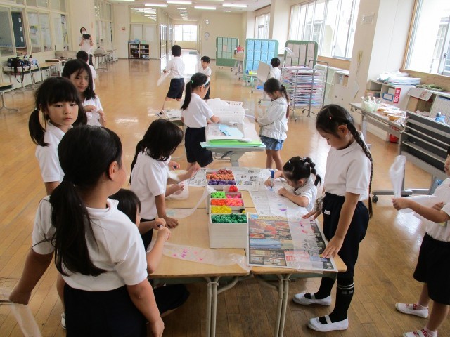 6/27 1年生 図画工作「チョッキンパッでかざろう」