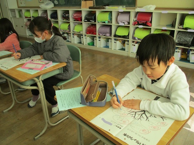 一年間の自分の成長を振り返るとともに、支えてくれた人たちへ感謝の気持ちを伝え、これからの自分にできることについてマイプラン学習で考えていきます。今回は、「できるようになったこと」「がんばったこと」をまとめました。