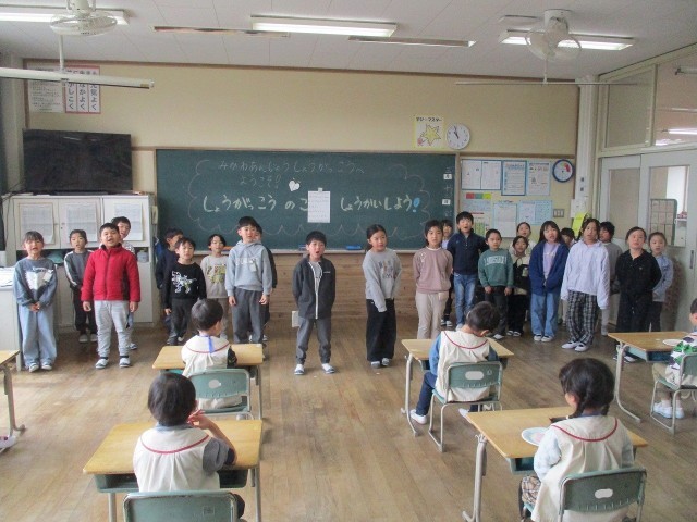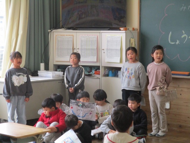 2/16 1年生「お世話になった6年生へ心を込めて」