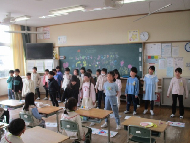 毎日、練習を重ね、今日は3学級とも全員そろって本番を迎えることができました。心を一つにして、笑顔で演じました。一年間の成長を見守っていただき、ありがとうございました。