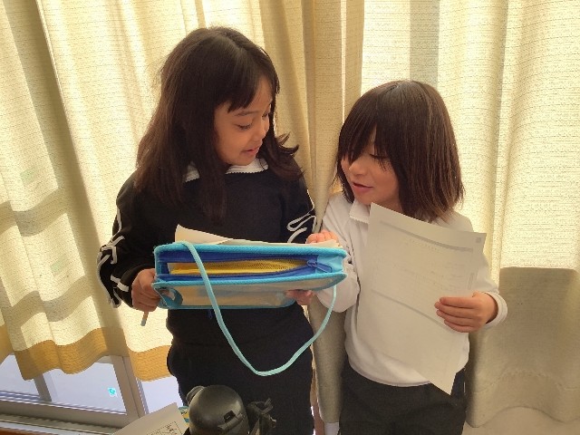 算数では九九に取り組んでいます。今回は、3の段を使った問題に取り組みました。難しい課題にも頑張って解いていました。また、互いに教え合いながら解答を導き出そうとする姿も見られました。