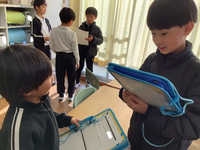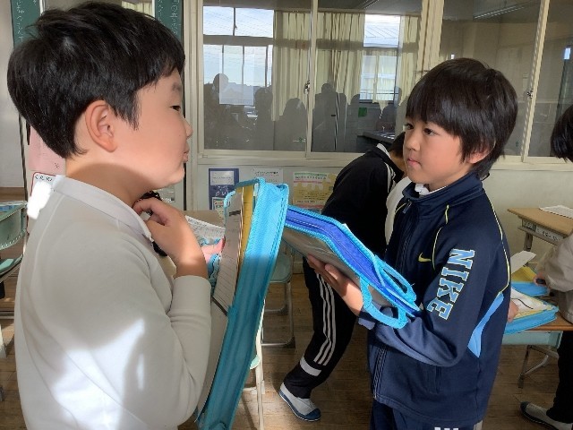 1年生をお客様としてお招きし、2年生がお店屋さんとして「おもちゃまつり」を開催しました。それぞれが工夫して製作したおもちゃを手に取って楽しそうに遊ぶ1年生の姿を見て、子どもたちも大満足でした。