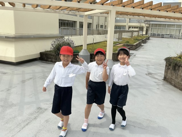 今朝、学年集会で屋外スペースの過ごし方を聞きました。その後、休み時間に楽しく過ごしました。これからもルールを守って楽しく過ごせるといいですね。