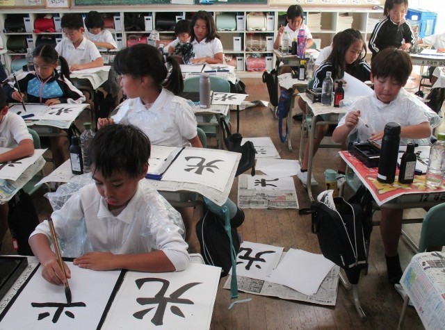 3年生は、毛筆の練習を何度か繰り返し、今週は「一」の字を清書しています。初めての毛筆による清書にちょっぴり緊張しながらも、一枚一枚ていねいに筆を使って書きました。