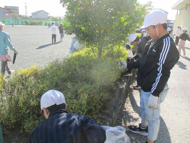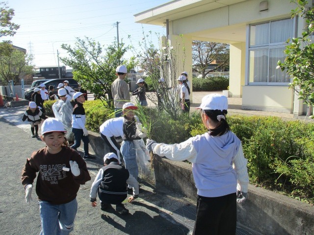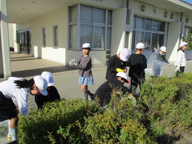 校内美化を目的に、3年生の子どもたちで草取りを行いました。美しい学校環境づくりに貢献しようと、子どもたちはとても頑張って作業をしてくれました。