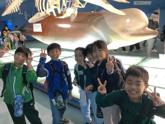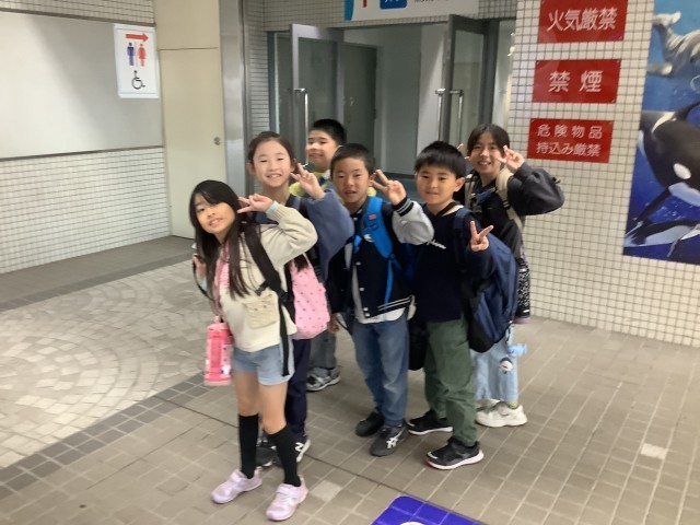 今日は、3年生は校外学習として名古屋港水族館へ行きました。イルカショーでは、イルカの大ジャンプに「すごい」と大きな拍手を送っていました。その後のグループ行動では、みんなで行く場所を話し合って決めて、そこで見た魚たちの動きや色、大きさに興奮していました。終わった後は、「シャチって最大9.8mもあるんだって」などと、今までの学習に結び付けて学んでいた子もいました。集合時間をきちんと守り、安全に気を付けて過ごせたこともできました。とても立派でした。