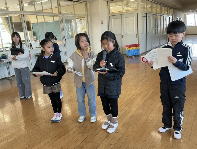 学習発表会が近づいてきました。自分たちで考えた発表も練習が進み、堂々とできるようになってきました。一年間のがんばりが立派な姿で見せられるように、あと少しみんなで協力していきましょう。