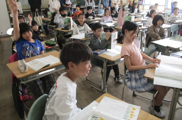 4/25 3年生 授業参観 国語「すいせんのラッパの音読発表会をしたよ」