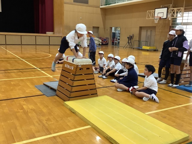 運動会が終わり、4年生は、跳び箱に挑戦しています。