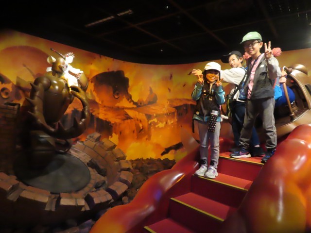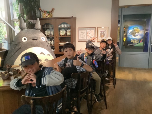 4年生は、校外学習で愛・地球博記念公園(ジブリ・パーク)に行きました。お弁当を友達と食べた後、ジブリの大倉庫を見学しました。大倉庫に入った瞬間から、ジブリの世界観に圧倒されました。その後の班別行動では、企画展示室に行き、ネコバスやトトロと写真を撮ったり、ジブリのなりきり名場面展では、登場人物になりきったりして楽しみました。物語の世界を疑似体験し、作画についてもどれもすごく手がこんでいて、しかも一つのシーンが作られるためには何枚も制作されていたことも学びました。楽しい時間を過ごすことができました。