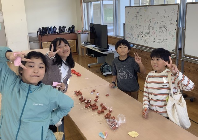なかよし係が考えた企画で、学活の時間に「4年1組・秋冬文化祭」を行いました。係や有志の子たちで手作りした射的やくじなどのゲームをみんなで交代で周り、お祭りの雰囲気を楽しみました。特に、射的は理科で学習した「とじこめた空気と水」の空気の実験が生かされたものになっていました。とても楽しい時間になりました。