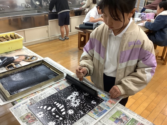 11/25 4年生 図画工作「昆虫を彫ったり、刷ったりしたよ」