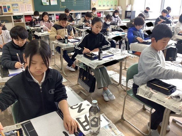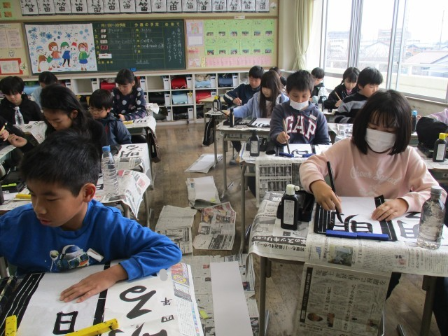 1/8 4年生「書き初め会に取り組んだよ」