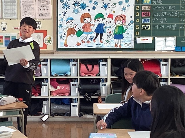 3学期のスタートです。それぞれのクラスで、冬休みの思い出を話したり、3学期の目標を立てたりしました。次年度の5年生へとつなげられるように、みんなで成長できる学期にしたいと思います。本年もよろしくお願いいたします。