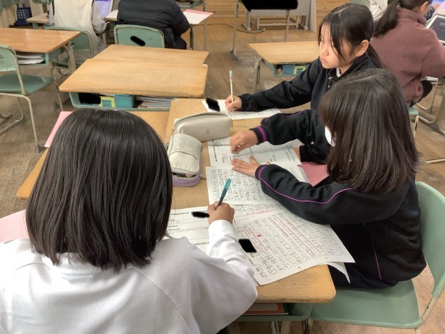 マイプラン学習で『ごんぎつね』の読み取りを行いました。情景描写が登場人物の心情を表していることを見つけ、登場人物の気持ちがどう変化していくかを考えました。それぞれが読み取ってきたことをもとに、クラス全員で意見を出し合って話し合いました。