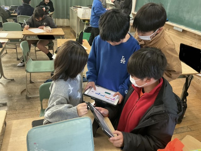 国語「調べたことを報告しよう」では、アンケートを作成し、結果から分かることをまとめています。自分たちでテーマを決めて、アンケートをタブレットや紙で作成し、友達や先生に頼んでいる姿がたくさん見られました。アンケート結果から発表ができるようにするために、分析をしている子も多くいました。