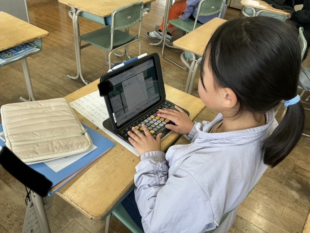 国語「調べたことを報告しよう」では、アンケートを作成し、結果から分かることをまとめています。自分たちでテーマを決めて、アンケートをタブレットや紙で作成し、友達や先生に頼んでいる姿がたくさん見られました。アンケート結果から発表ができるようにするために、分析をしている子も多くいました。