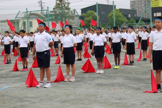 2学期始まって初の学年集会を行いました。運動会で使用するフラッグの説明を聞きました。新たな挑戦に向けて真剣な表情で自分のフラッグと向き合っていました。運動会での演技に期待です。 -