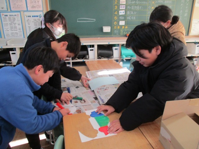 社会科の「工業」「運輸」の単元で、「貿易ゲーム」の活動を通して疑似体験しました。各グループが製品を製造・運搬し、製品を売買します。活動を通して、生産や運輸、分業と協業について疑似体験しました。