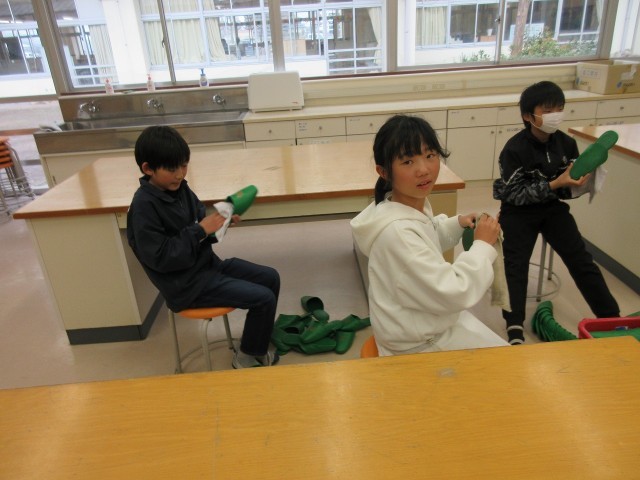 ミシンを使ってのランチョンマット作りが始まりました。ミシンを扱うのは、なかなか難しそうですが、友達同士で協力し合い、前向きに一生懸命に取り組んでいました。心のこもったすてきなランチョンマットができそうですね。