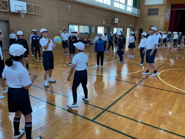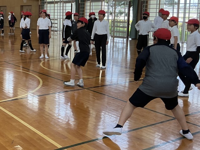 6年生になり、初めての学年合同体育を行いました。服装や整列の確認、ラジオ体操等行い、他学年のお手本となれるよう基礎的なこともしっかり行えるよう意識を高めました。その後の時間は、クラスの垣根を越えて全体でドッジボールを行いました。いろいろな人がボールを投げられるよう、声をかけ合ったり、「ナイス!」「いいじゃん!」などと褒め合う姿も見られました。最高学年として学年全体で雰囲気をよい方向にして、みんなで学校を盛り上げていきたいですね。