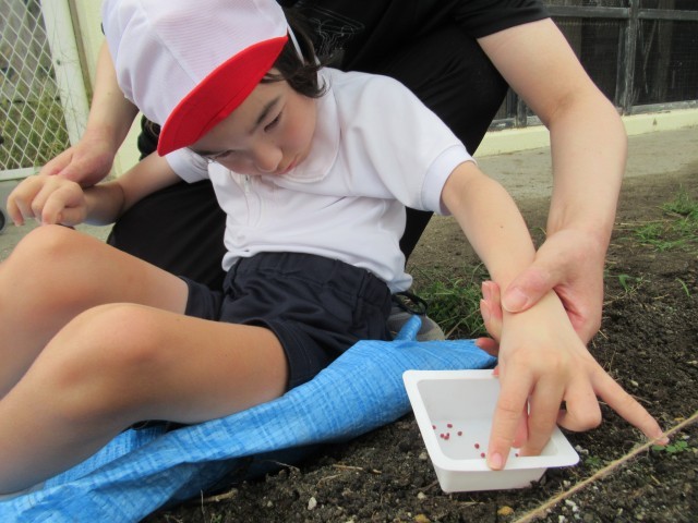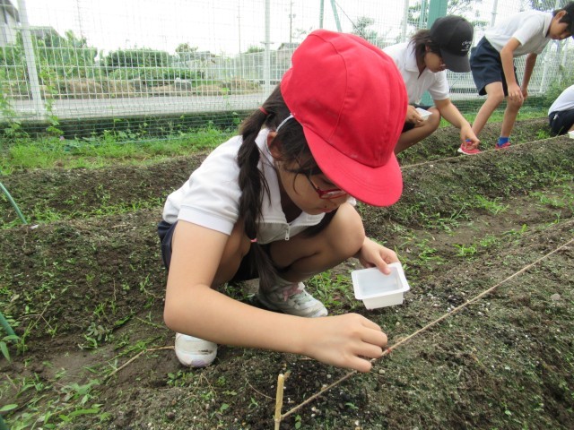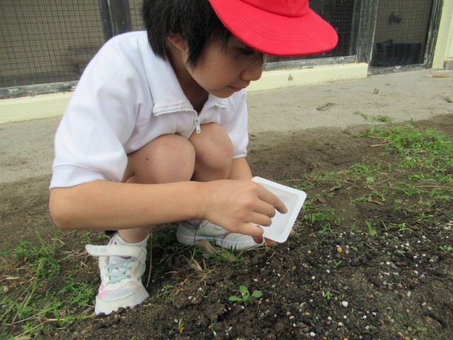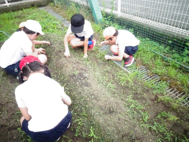 みんなで畑の草取りをしてきれいにした後、大根とカブの種まきをしました。みんなで頑張って育てていきます。これからの成長が楽しみです。