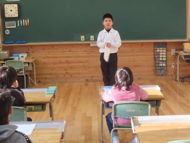 国語の学習で、自分の好きな時間について作文を書きました。それぞれの好きな時間について、みんなの前で堂々と発表できました。
