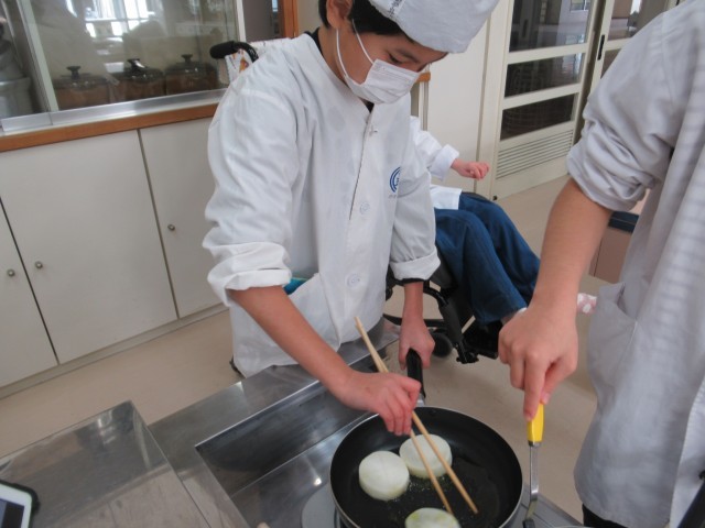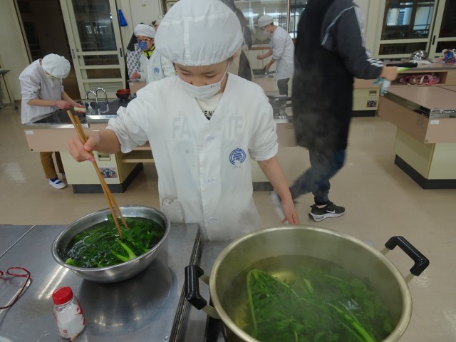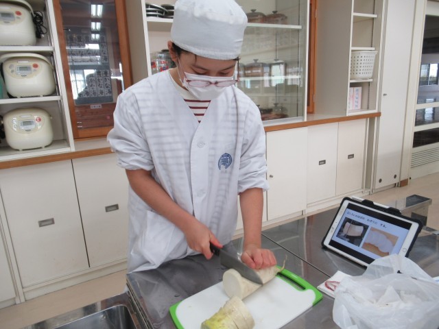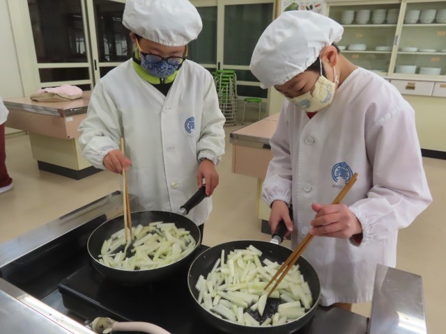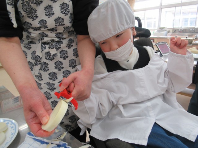 今日は、畑で収穫した大根を使って調理実習をしました。3グループに分かれて「大根ステーキ」「大根の炒め物」「大根の煮物」を作りました。グループで協力して取り組み、どのグループも美味しい大根料理を作ることができました。給食の時間にみんなで食べました。どの子も笑顔で「おいしい」と言いながら食べていました。