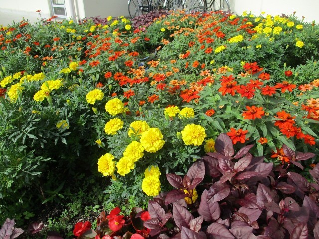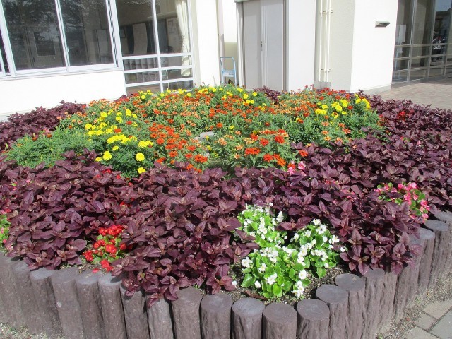 秋本番となり、植物にとっても育ちやすい季節となりました。玄関前の花壇は、マリーゴールドやジニアなどの花が満開です。これも、花いっぱいプロジェクトのみなさんが、ていねいに水やりをしてくれているおかげです。秋の美しい花々が、学校へ彩をもたらしてくれています。