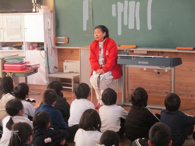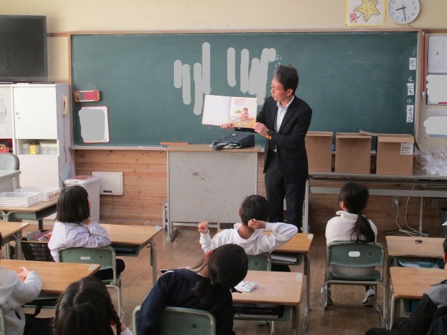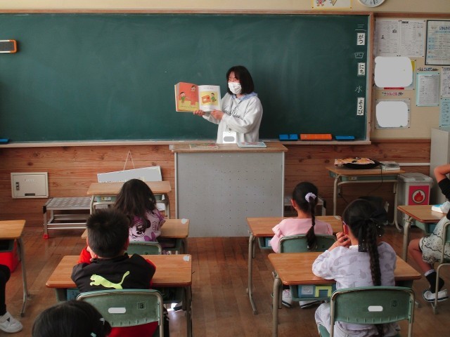 おはなしパフェのみなさまによる読み聞かせが行われました。今日は、1年・2年・のぞみ学級です。子どもたちは、すてきな物語の世界を味わっていました。