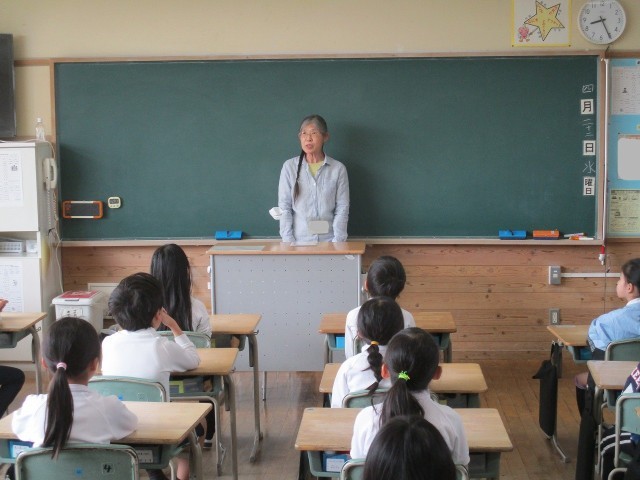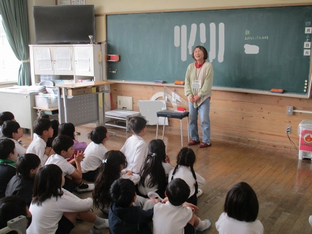 本年度最初の「おはなしパフェ」のみなさまによる読み聞かせが行われました。今回は1・4年生です。子どもたちは、すてきな物語の世界に引き込まれていました。