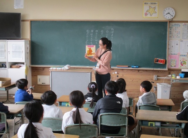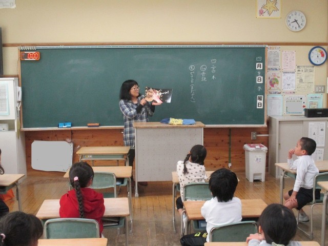 1年1組:「なが~いおはなのブタくん」「しりとりだいすきなおうさま」「だるまさん」